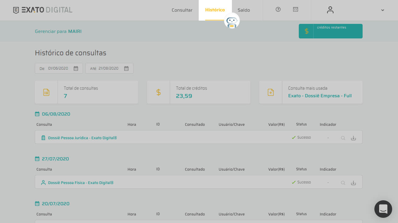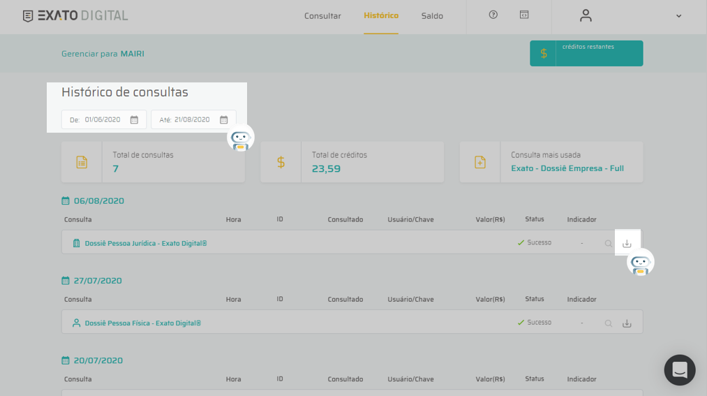 Histórico de consultas | Central de Ajuda Exato Digital
